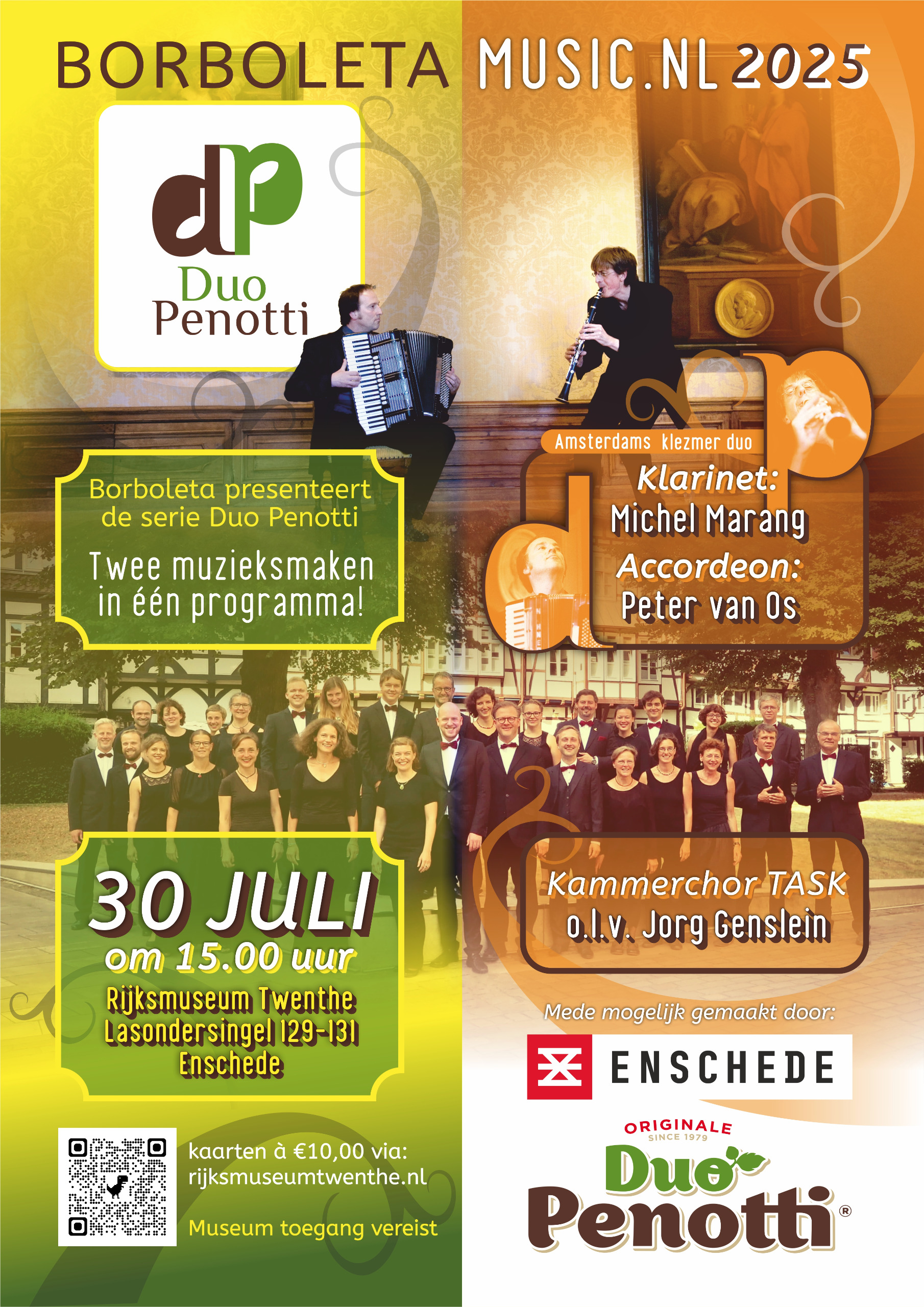 Het is telkens een uniek concert, een eenmalige ontmoeting. In het Rijksmuseum bieden op 30 juli het Duitse ‘Kammerchor TASK, onder leiding van Jorg Genslein en het Amsterdamse klezmer duo (Michel Marang, klarinet & Peter van Os, accordeon) een ontmoeting van een verschillende gelaagdheid. Kamermuziek en ‘feest’muziek; vocaal en instrumentaal.
